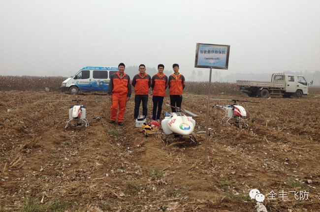 在棉花田里,自走式噴霧機(jī)、自走式旋耕機(jī)、大型棉花收采機(jī)、大型植保拖拉機(jī)及全豐航空植保農(nóng)用無人直升機(jī)齊上陣,實(shí)現(xiàn)對(duì)棉花從種到收的全程機(jī)械化作業(yè)。植保專家從作業(yè)速度、作業(yè)時(shí)間、作業(yè)效果比較分析,農(nóng)用無人機(jī)在病蟲害防治方面具有絕 對(duì)的優(yōu)勢(shì),同時(shí)因遠(yuǎn)距離操作,避免了農(nóng)藥對(duì)人體的傷害,飛防專用藥劑的高濃度、低容量、簡(jiǎn)包裝具備生態(tài)環(huán)保優(yōu)勢(shì)。同時(shí),它的出現(xiàn)解決了棉花后期大型機(jī)械無法進(jìn)地作業(yè)或者進(jìn)地作業(yè)將傷害棉花產(chǎn)量的問題。