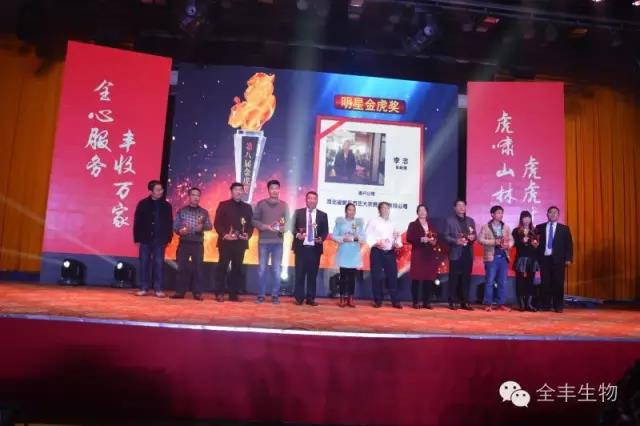 晚餐過后,激動人心的時刻到來了,一年一度的“金虎獎”頒獎盛典正式開始。向長期以來支持安陽全豐技術(shù)服務(wù)工作的單位和個人頒發(fā)“金虎獎”,并向業(yè)務(wù)突出的銷售精英頒發(fā)獎品。榮譽承載著辛勤的歲月,勇往直前是我們當下的腳步。2017年我們來了,我們相信未來是屬于“全豐家人們”的未來,2017年“再創(chuàng)新高”。