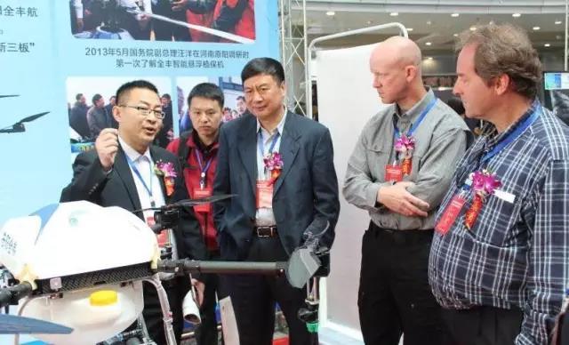 蘭玉斌教授帶著美國農(nóng)業(yè)部農(nóng)業(yè)科學(xué)研究署B(yǎng)radley K Fritz 高 級研究員和昆士蘭大學(xué)施藥與安全中心Andrew Hewitt 教授/主任 等一行學(xué)者前往安陽全豐航空展位參觀,并向兩位外賓介紹全豐,周總為參觀學(xué)者介紹全豐油機電機。