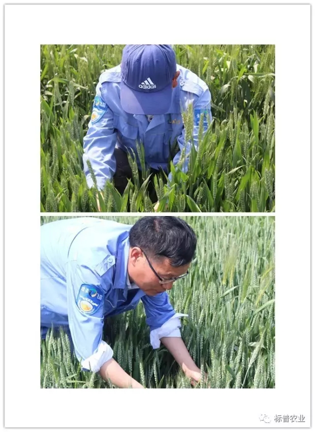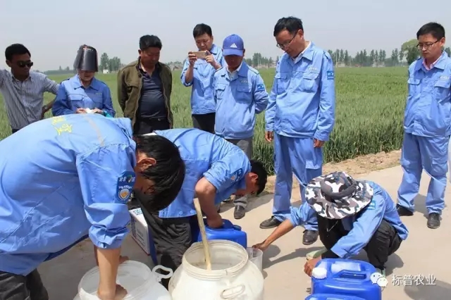 藥劑督察組是流動的工作狀態(tài),來到第二個作業(yè)點,飛機正在等藥,小組成員們直接下地勘察病情,烈日下,大家沒有一個人叫苦叫累。一番調(diào)查之后發(fā)現(xiàn)這里的小麥病情較輕,但是也有條銹病和赤霉病的發(fā)生。當老鄉(xiāng)把水和藥品拉到作業(yè)現(xiàn)場,督察組嚴格按照作業(yè)標準監(jiān)督作業(yè)小組配藥,并對作業(yè)過程中不標準的地方提出指導,督察小組的意義是不能因為一味的追求作業(yè)效率而忽略質(zhì)量,工作就是相鋪相成的。