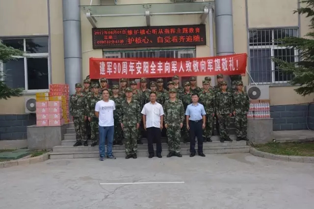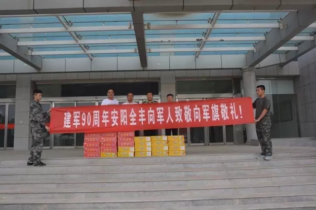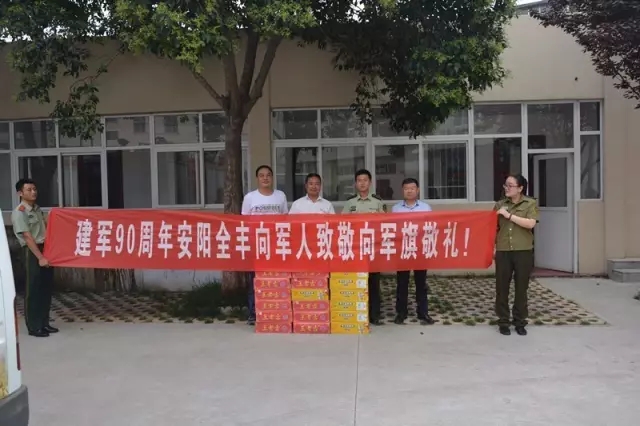 中國(guó)人民解放軍建軍90周年,2017年8月1日,安陽(yáng)全豐生物科技有限公司副總經(jīng)理?xiàng)罴t軍,全豐航空植??萍脊煞萦邢薰靖笨偨?jīng)理、安陽(yáng)太行低空空間應(yīng)用職業(yè)培訓(xùn)學(xué)校校長(zhǎng)陳磊,綜合辦副主任張志剛一行受全豐公司董事長(zhǎng)兼總經(jīng)理王志國(guó)的委托,帶著對(duì)駐安子弟兵的深情厚誼到北關(guān)區(qū)武裝部、安陽(yáng)市看守所、安陽(yáng)市武警消防中隊(duì)看望慰問(wèn)部隊(duì)官兵,向他們致以節(jié)日的問(wèn)候和美好的祝福,并送去了慰問(wèn)物品,受到官兵們的熱烈歡迎!