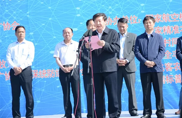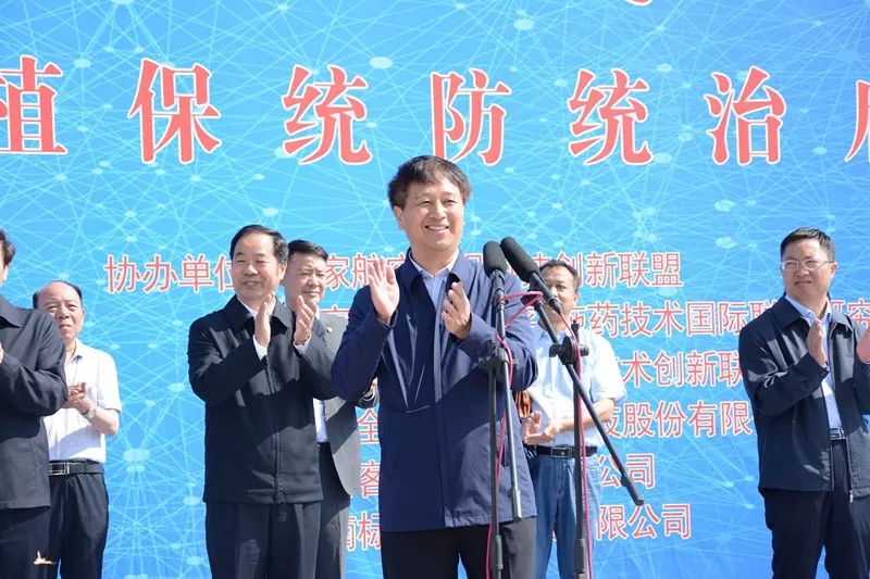 中國農(nóng)技推廣協(xié)會植保統(tǒng)防統(tǒng)治分會會長、安陽全豐董事長王志國在大會上做了重要演講,他講到航空植保省工、省水、適應(yīng)性強(qiáng)、突擊能力強(qiáng),是農(nóng)作物病蟲害統(tǒng)防統(tǒng)治的重要手段。經(jīng)過近幾年的發(fā)展,航空植保迎來了大發(fā)展,今天大家共同見證了植保無人機(jī)亮劍于小麥200萬畝統(tǒng)防統(tǒng)治作業(yè),相信未來不久,航空植保必將成為大面積農(nóng)作物病蟲害防治的重要力量。他指出作為中國農(nóng)技推廣協(xié)會植保統(tǒng)防統(tǒng)治分會會長單位,我們深感責(zé)任重大,使命艱巨,并承諾將以“科學(xué)植保、高效植保、綠色植?!睘槔砟?,自覺維護(hù)行業(yè)利益、強(qiáng)化行業(yè)自律,與各位同仁一起把航空植保發(fā)展成為綠色農(nóng)業(yè)、生態(tài)農(nóng)業(yè)的重要支撐。同時他還承諾作為安陽200萬畝小麥統(tǒng)防統(tǒng)治的實施單位,在作業(yè)的過程中,將嚴(yán)格標(biāo)準(zhǔn)、規(guī)范操作、確保安全、注重實效,把此次的統(tǒng)防統(tǒng)治作業(yè)打造成植保無人機(jī)智能化、信息化、科學(xué)化水平的農(nóng)民信得過的品牌,成為航空植保史上新的里程碑。