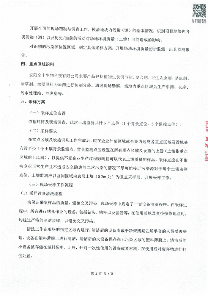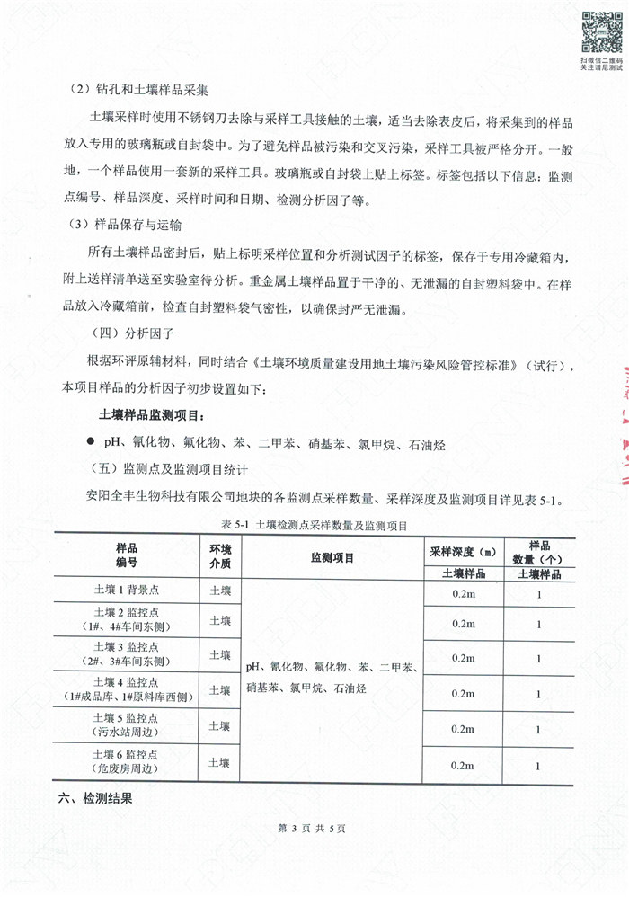 安陽全豐生物科技有限公司土壤自行監(jiān)測報告
