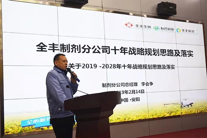 原藥公司王建國、制劑公司李會爭、航空植保張曉林、研發(fā)中心張朋飛等分別代表各自部門匯報了今后十年的發(fā)展規(guī)劃。